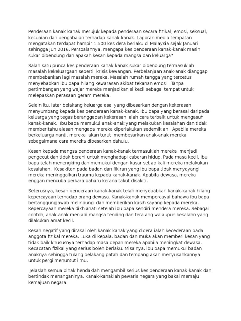 Punca Penderaan Kanak Kanak Spm Pdf